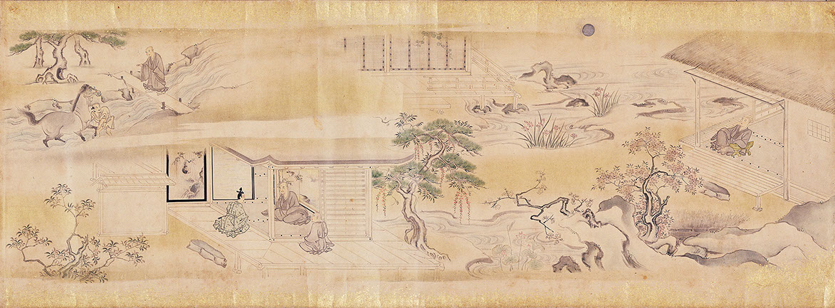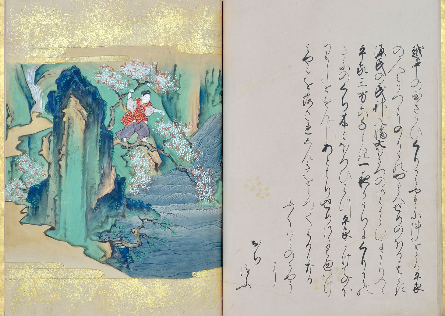 姫君と貴公子の恋愛や、勇ましい武士たちの闘い、天狗や鬼の活躍など、古来さまざまな物語が絵とともに楽しまれてきました。絵巻や絵本のかたちに作られた、室町時代から江戸時代にかけての物語絵約50点を所蔵しています。