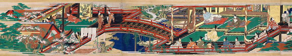 姫君と貴公子の恋愛や、勇ましい武士たちの闘い、天狗や鬼の活躍など、古来さまざまな物語が絵とともに楽しまれてきました。絵巻や絵本のかたちに作られた、室町時代から江戸時代にかけての物語絵約50点を所蔵しています。